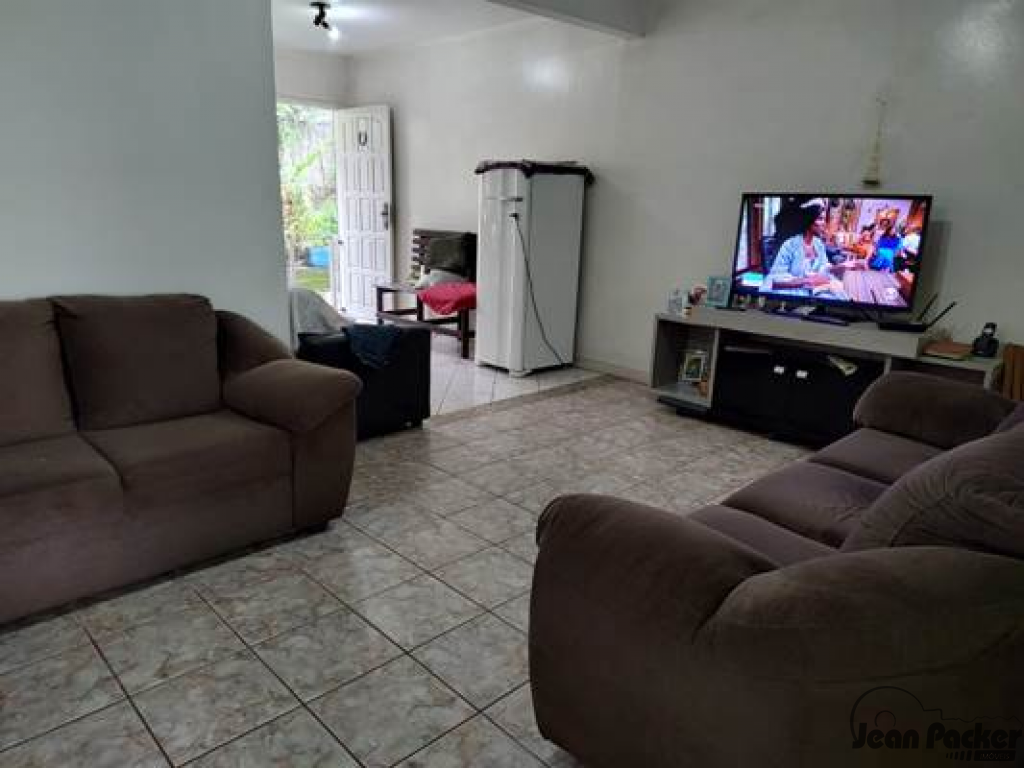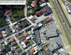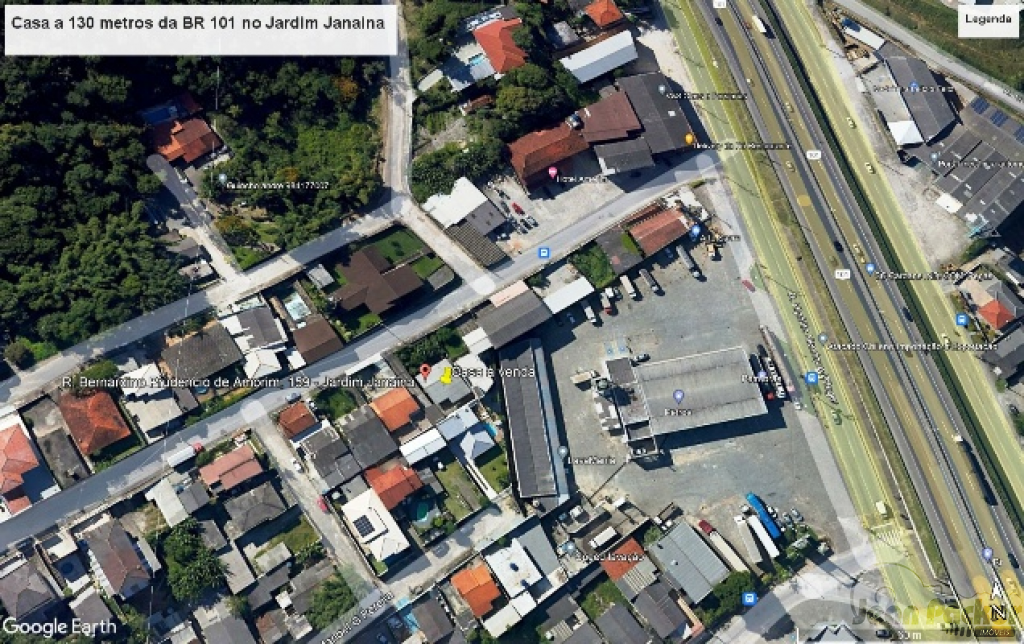 A pouca distância da BR 101 no Jardim Janaina (Rua Principal) residência de alvenaria e laje (sem habite-se) com sala para 2 ambientes, 3 dormitórios, banheiro social, cozinha, lavanderia e garagem para 3 veículos.